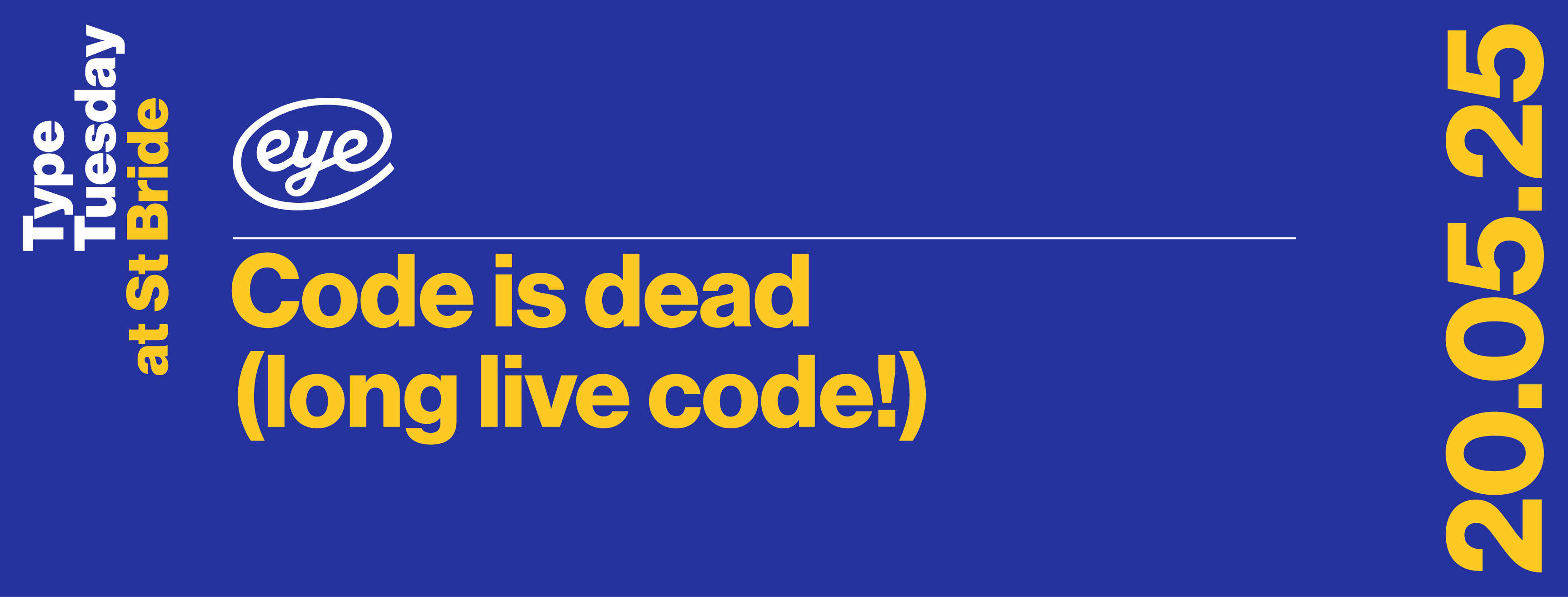 This event – the 50th edition of Eye’s regular Type Tuesday events – will focus on digital design and the threats of so-called ‘AI’.