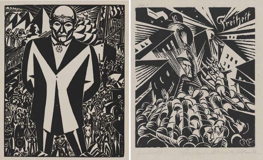 Left. Frans Masereel, Businessman, 1920. Right. Constantin von Mitschke-Collande, Freedom, 1919.