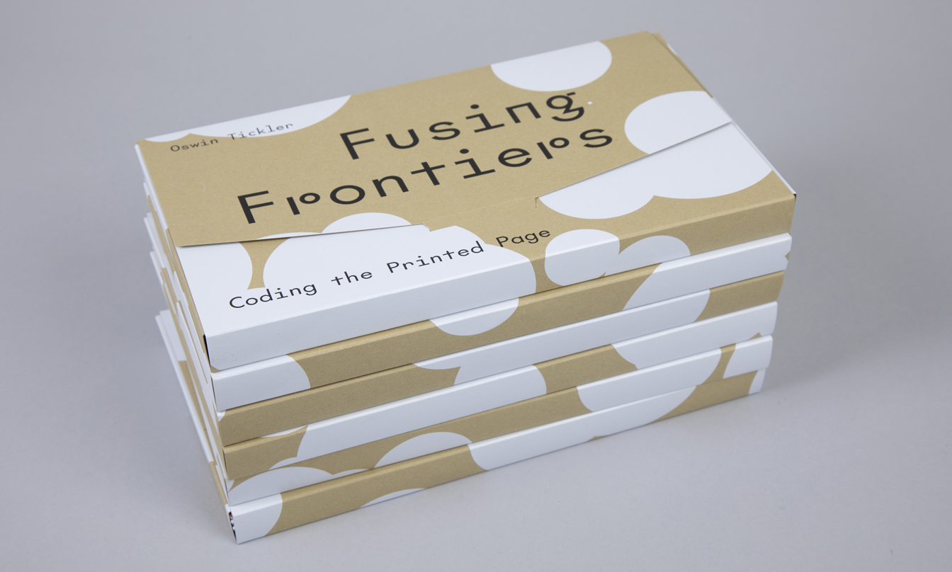 The coded print ephemera is packed inside this digitally printed Fusing Frontiers box, printed on a variety of different papers (see ‘The art of surprise’ on Pulp Digital). Each outer pack design is different, too, in typeface and pattern.