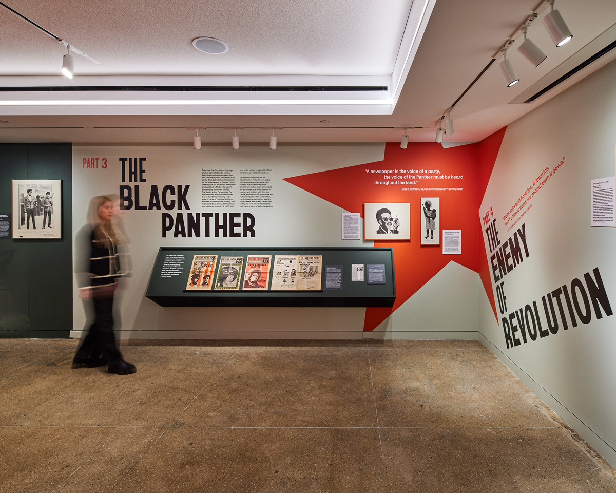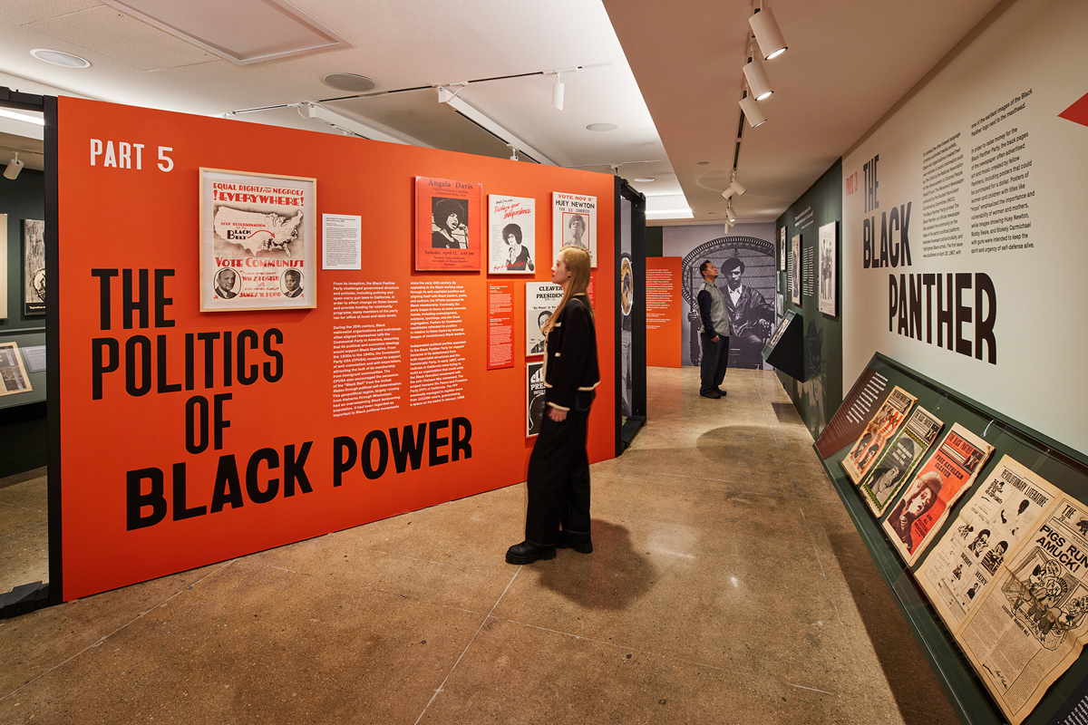 The exhibition is divided into six sections. Part five looks at the politics of Black Power, featuring ephemera from the Black Panther members who ran for office at local and state levels. Photo by Samuel Morgan Photography.