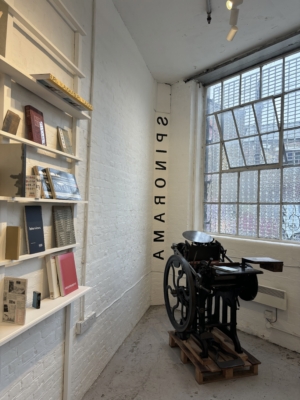 In addition to ‘Spinorama’, the London Centre for Book Arts is always worth a visit. Based in one of the last authentic buildings in Hackney Wick, the Centre has machines and tools and a skilled team you can work with for your binding projects, plus an exceptionally good bookshop focused on the arts of the book and independent publishing.