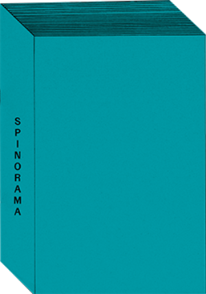 ‘Spinorama’ also reflects upon the ageing of books, with spines whose continued exposure to sunlight has bleached the colour and lettering to nothing (design tip: avoid neon colours) and old, worn hardbacks where the spine has fallen off, revealing the random scrap paper the bookbinder has used to hold the book’s sections together. The lining assumed never to be seen is suddenly revealed – like a back-street building when the structure in front is demolished.