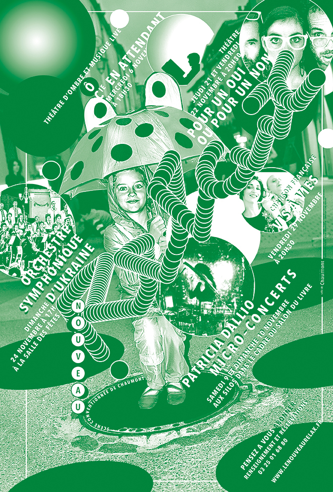 A new theatre in Chaumont approached Lenz and Perrottet for another long-term collaboration. The small town east of Paris was known for its annual international poster exhibition. The new theatre was built on the former site of a cinema (Relax) and a bowling alley. The venue’s new designation received much criticism in the local press. Its director outlined his concerns to the designers: he admired their work, but was worried that its graphic sophistication might be felt as ‘elitist’ and intellectual. They should communicate as directly as possible with the town and its people.