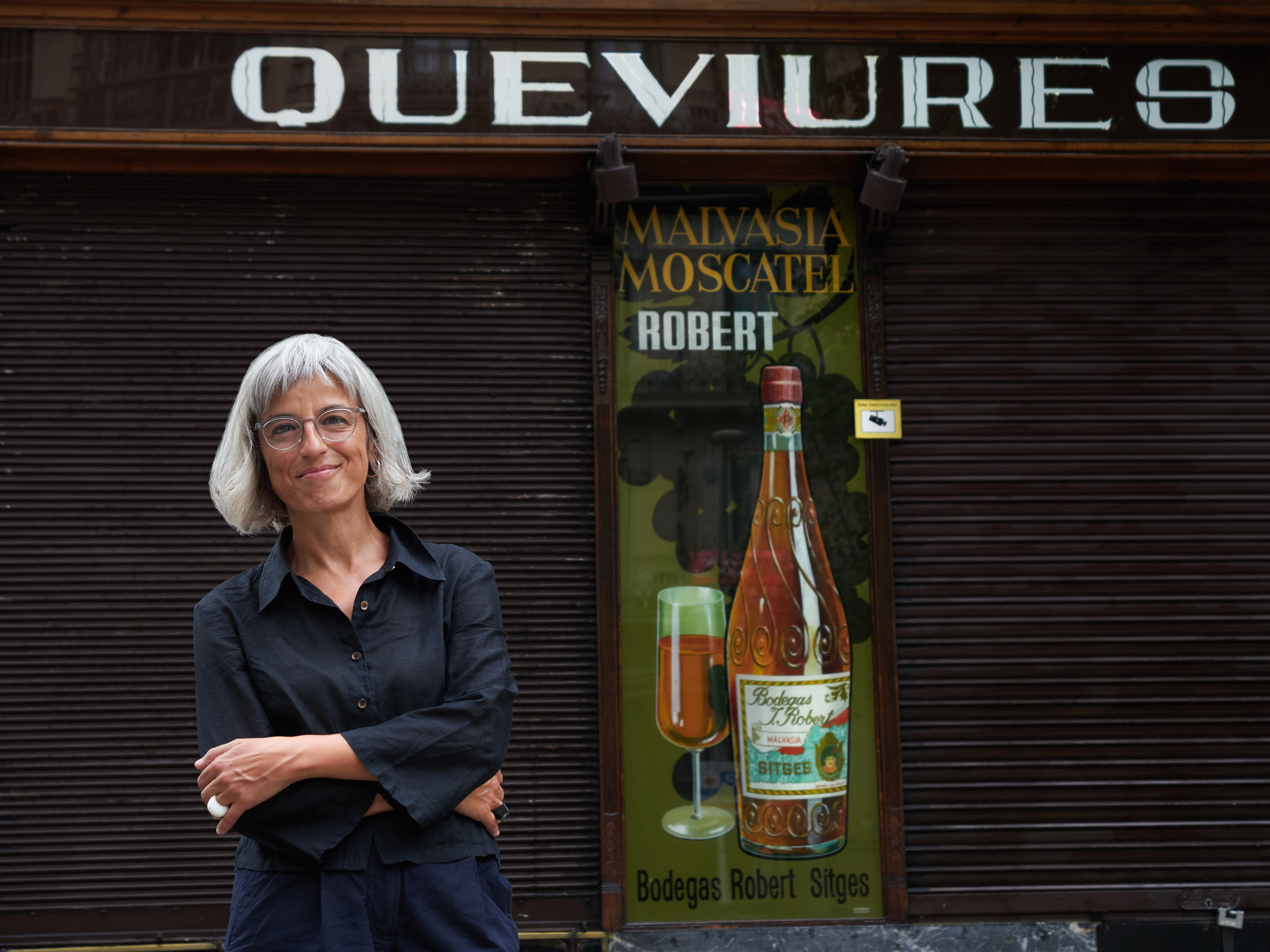 Laura Meseguer standing in front of Queviures Murria, an emblematic Barcelona shop that dates from 1903. All photographs by Francesco Brembati.