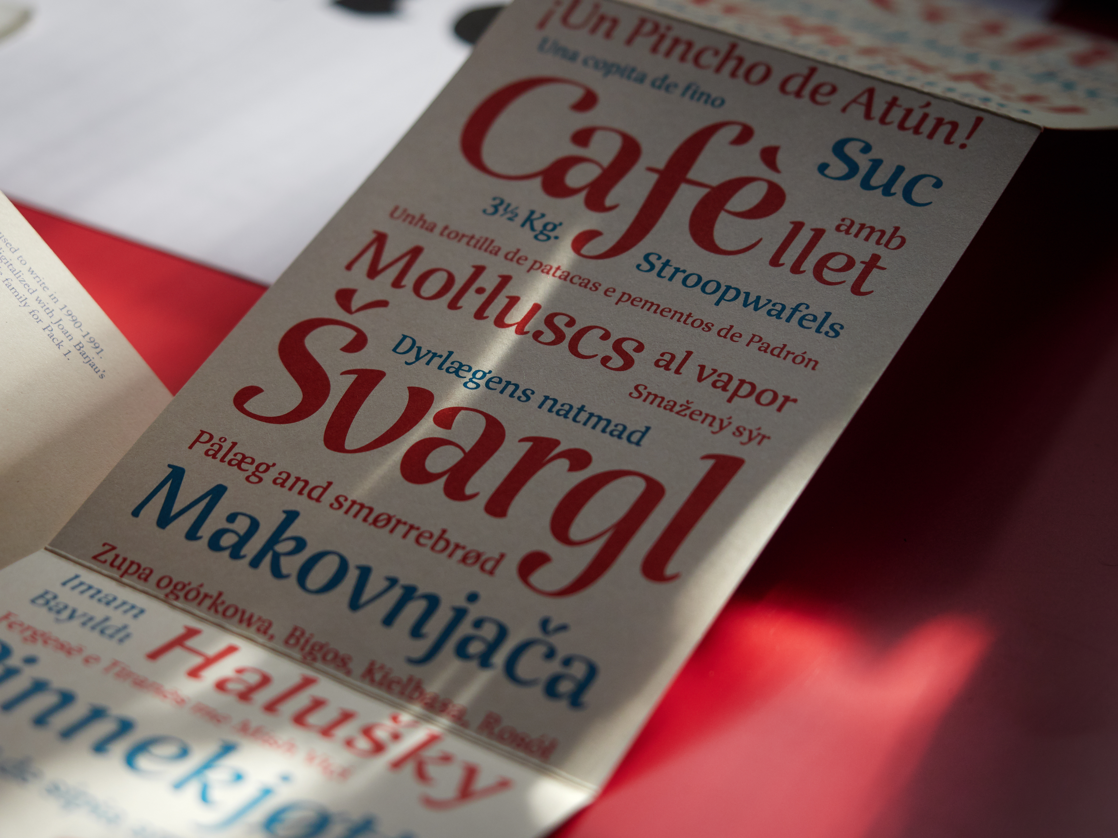 Meanwhile, the Type-Ø-Tones type foundry had built up a versatile library. Two of its original founders had gradually moved away to concentrate on other areas of design; the company was now a two-person enterprise run by Meseguer and Josema Urós. In the early 2010s, she produced her first extensive typeface family – Multi. The original assignment came about through her contacts in the Netherlands.