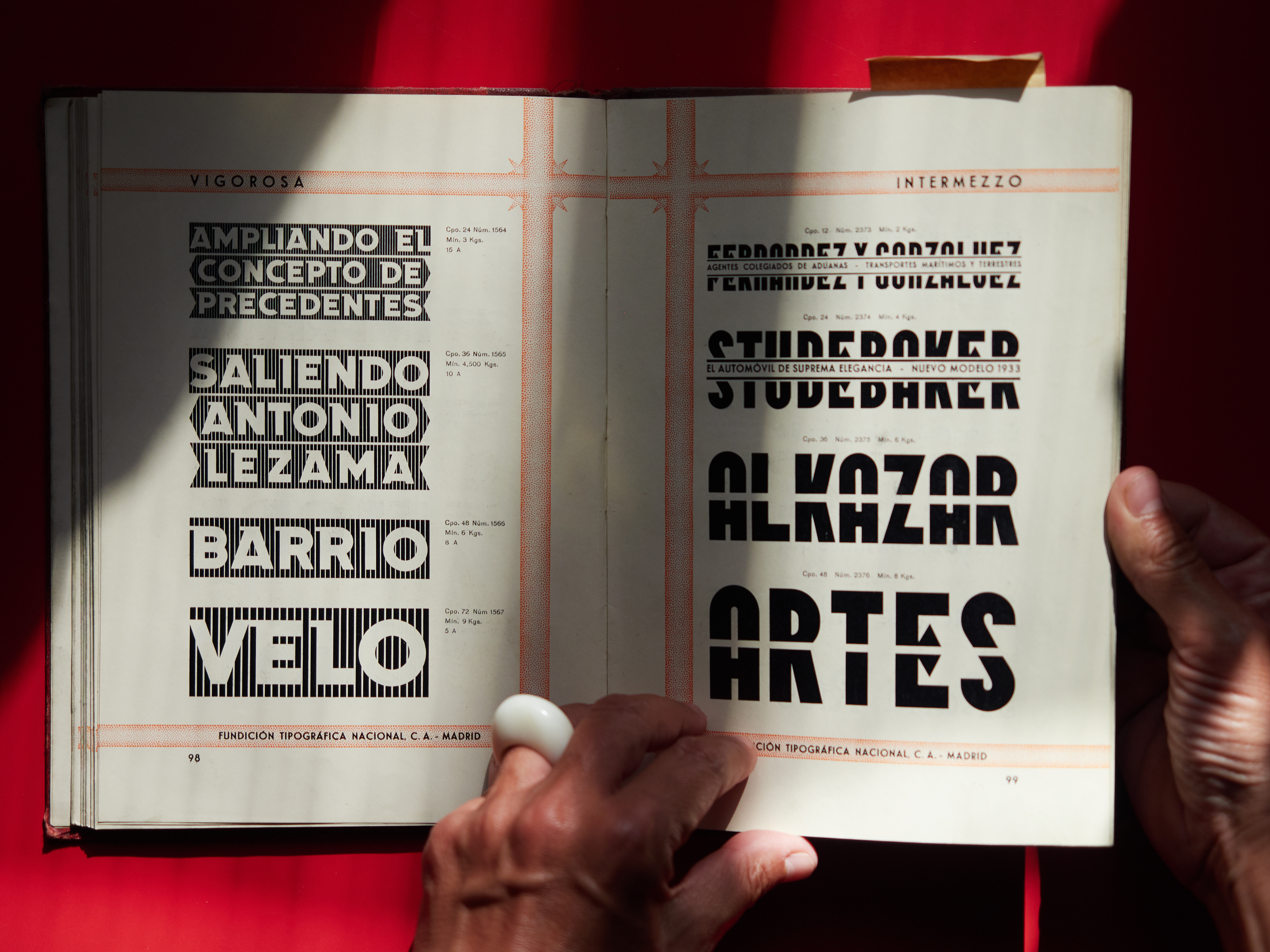 ‘The curriculum consisted of various analogue lettering exercises’, says Meseguer, ‘like hand-drawing letters for a logo, or copying Futura with pencil and ink. While I was still a student, I was lucky to be hired as an intern by a graphic design studio. My first job was to work on a Repromaster [a process camera for reproducing graphics]. I had to reproduce the art director’s lettering sketches using Letraset dry-transfer sheets. I later realised how relevant that was – it made me quickly develop my knowledge of typefaces and composition. I learned how to compose type using a photocomposition machine and became pretty competent at it.’