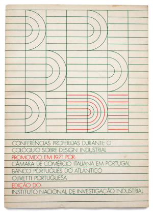 Alda Rosa’s catalogue cover for ‘Conferências Proferidas durante o Colóquio sobre Design Industrial’, 1971. Client: INII.