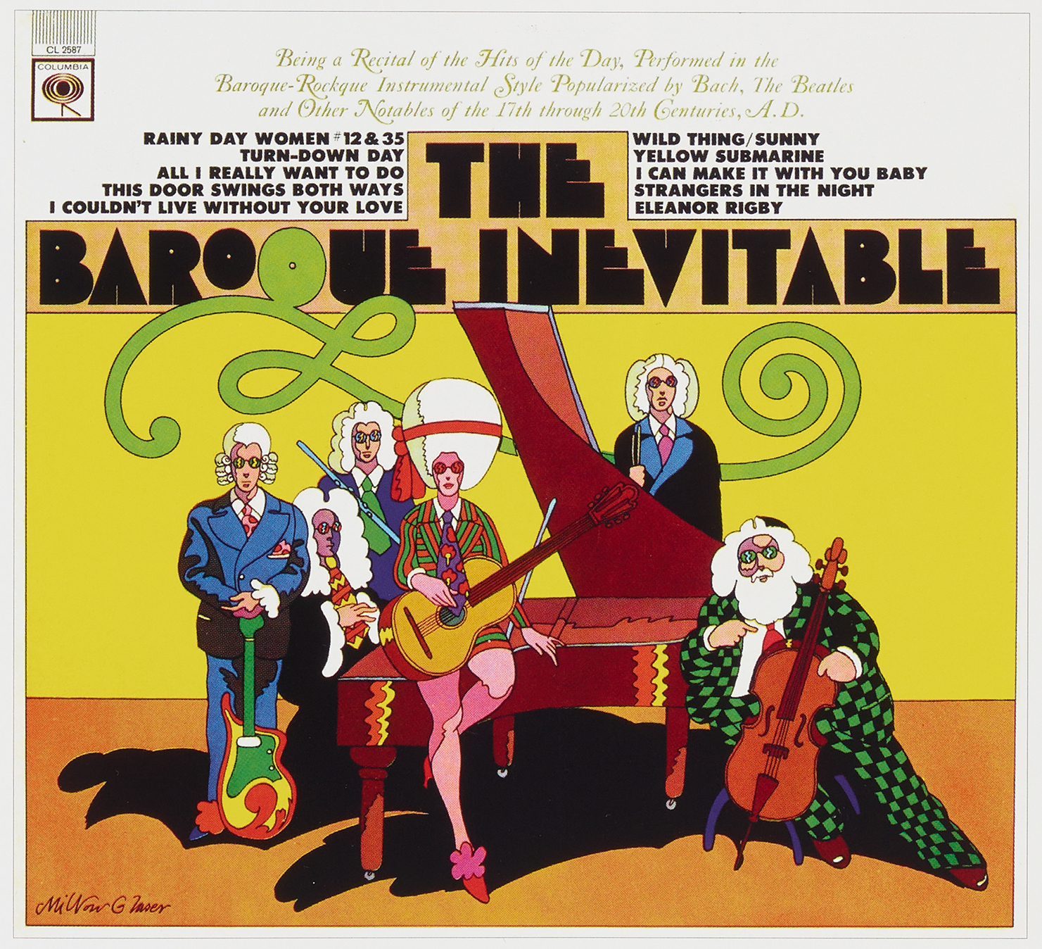 Top. Cover of The Baroque Inevitable (Columbia Records, 1966), illustrated and designed by Milton Glaser.