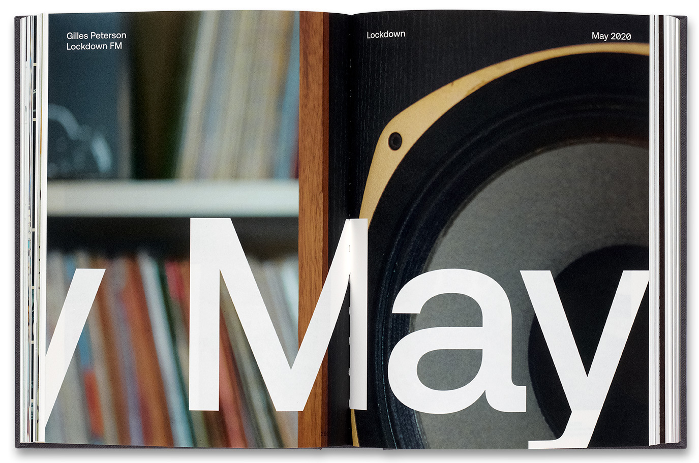 The core of Gilles Peterson’s Lockdown FM – Broadcasting in a Pandemic is a series of 80 playlists, coolly typeset by designer Hugh Miller in Monument Grotesk. It is also an illustrated diary, starting with parties and trips abroad and ending in June 2020, peppered with fabulous spreads of album sleeves from Peterson’s hoard. There are articles and short tributes in the fizzy style of editor Paul Bradshaw’s legendary Straight No Chaser magazine, plus art and heartfelt concrete poetry.