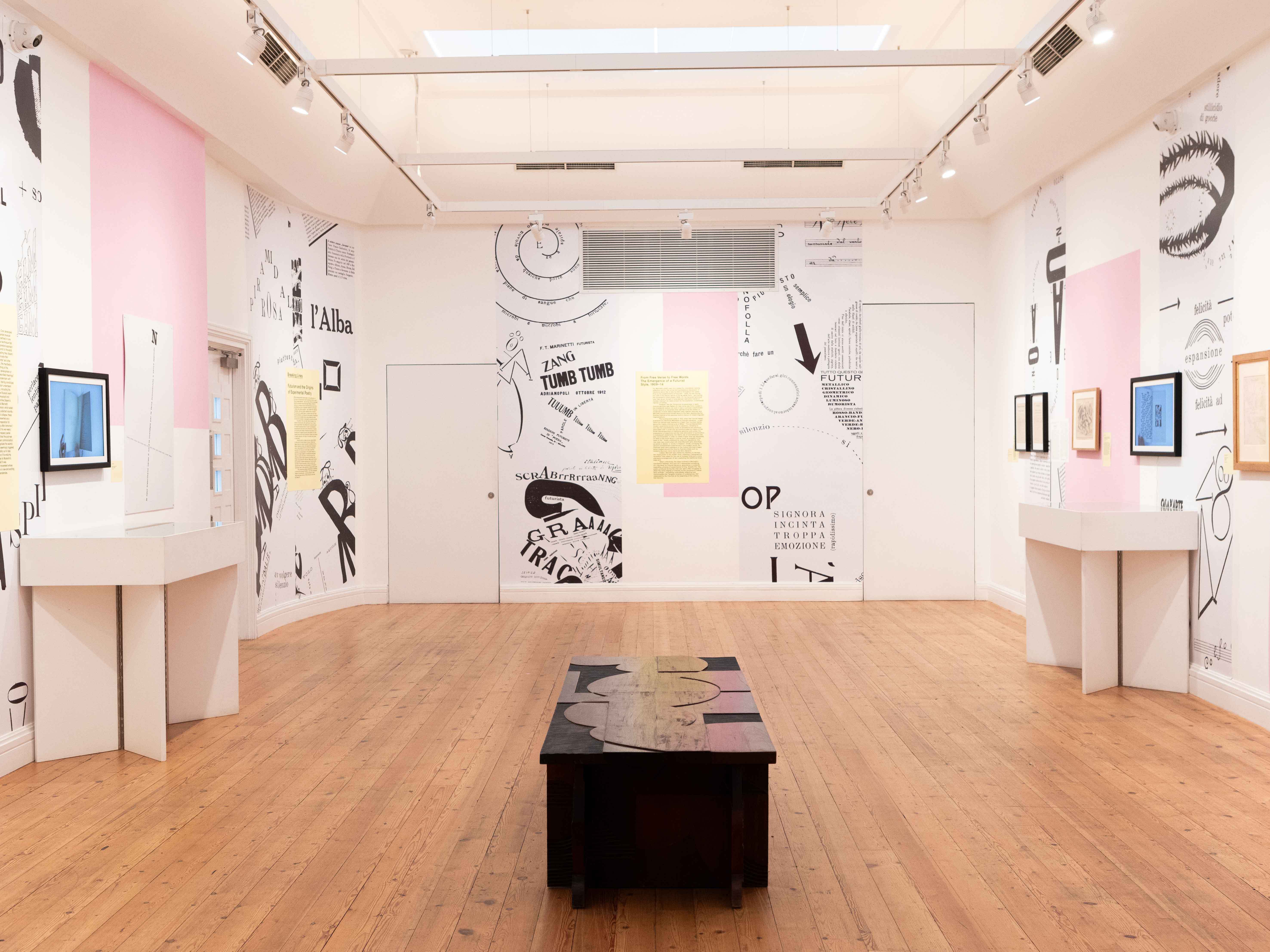 ‘Breaking Lines’ (15 Jan – 11 May 2025) is two exhibitions for the price of one. Both are focused on experimental poetry and illustrate how Futurism laid the foundations for concrete poetry in postwar Britain. But experimental poetry goes hand-in-hand with experimental typography – you cannot have one without the other. As a designer, I see typography before the poetry, so although the exhibition is marketed as a poetry show it is possibly more of a typographic show; not everything exhibited is in the form of poems.