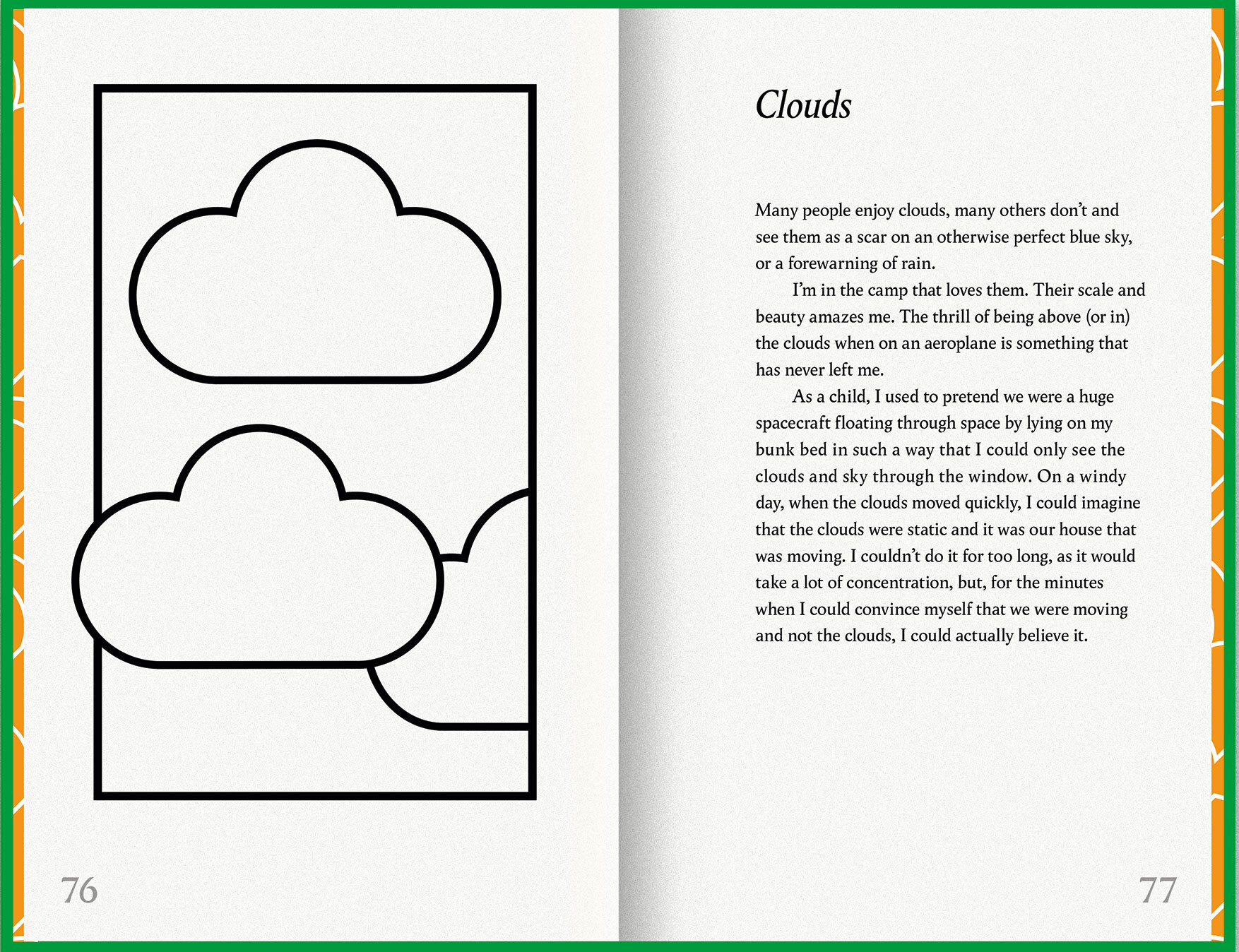 Lowe previously self-published Lost Ordinary Magic as a smaller book and, in this new edition for Sphere, he has expanded the subjects he covers to 68 short texts, each partnered with a line drawing (the title comes from a sentence found in a 1966 novel by Leonard Cohen). The book opens with an introduction to Lowe’s way of thinking and looking: ‘For many years he thought that everyone saw the world in the same way he did, until one day, it was revealed to him they didn’t.’