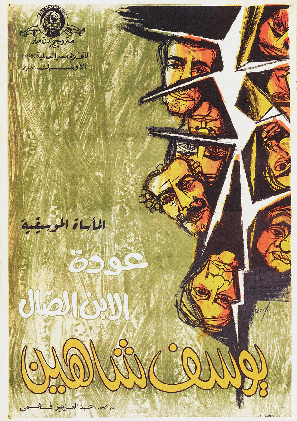 Throughout a time of great political and social turmoil, Egyptian cinema churned out action films, dramas, musicals and comedies like Al-Hamawat Al-Fatinat [The Charming Mothers-in-Law], top left, El mamalik [The Mamluks], starring Omar Sharif and Awdat al-ibn al-dal [The Return of the Prodigal Son], below. Home-grown stars included Fairouz (Egypt’s Shirley Temple), Sharif and Nadia Al-Gindi.